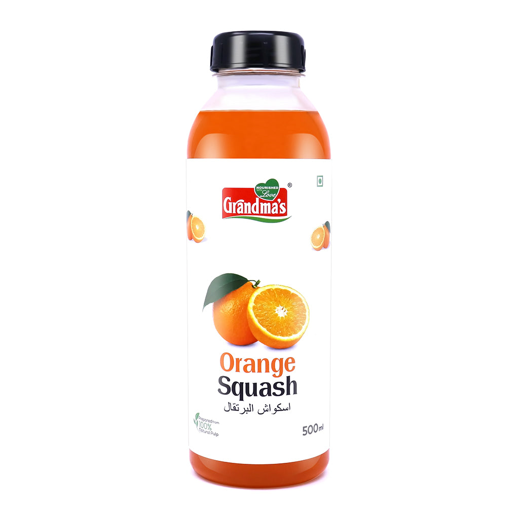 Quench your thirst with the refreshing taste of Grandma’s Orange Squash, made from juicy, sun-ripened oranges. Packed with natural fruity flavor, this concentrated drink is perfect for mixing with chilled water or soda for a refreshing boost any time of the day.