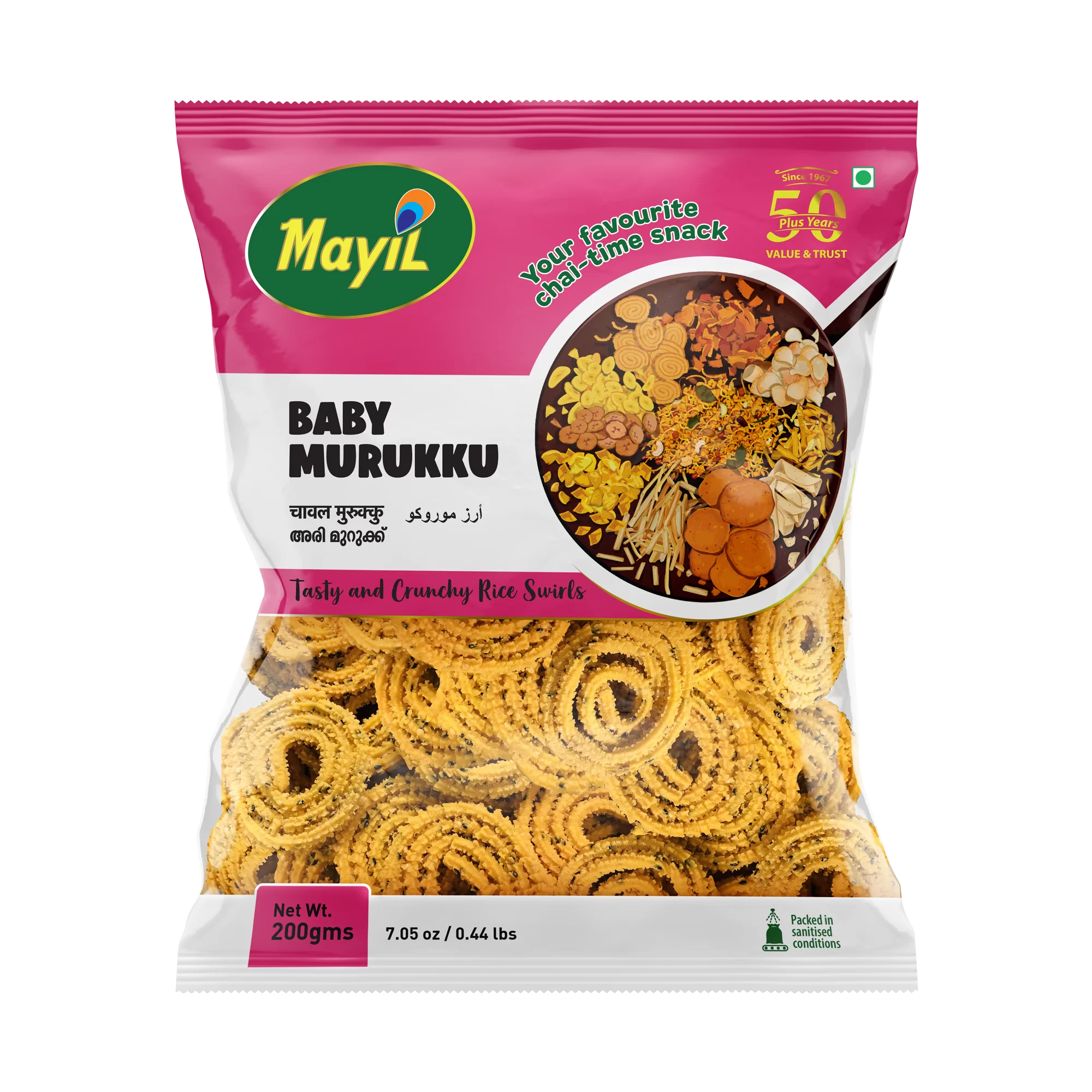 Enjoy the satisfying crunch of Mayil Baby Murukku, your absolute favorite chai-time snack!